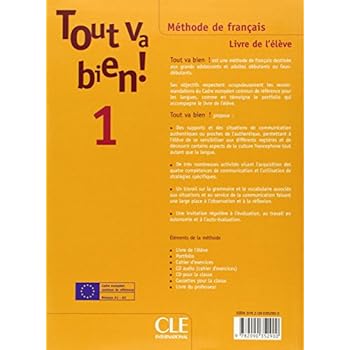 Tout va bien ! est une méthode basée sur les recommandations du CECR. Elle s'organise autour de savoirs, de savoir-faire, savoir-être et savoir-apprendre.Tout va bien ! propose : Des supports et des situations de communication authentiques ou proches de l'authentique, permettant à l'élève de se sensibiliser aux différents registres et de découvrir certains aspects de la culture francophone tout autant que la langue De très nombreuses activités visant l'acquisition des quatre compétences de communication et l'utilisation de stratégies spécifiques Un travail sur la grammaire et le vocabulaire associés aux situations et au service de la communication faisant une large place à l'observation et à la réflexion Une invitation régulière à l'évaluation, au travail en autonomie et à l'auto-évaluation.Tout va bien ! 1 dont les objectifs respectent scrupuleusement les recommandations du CECR propose également un portfolio inclus dans le livre de l'élève. L'ouvrage s'organise en 6 unités de 2 leçons chacune qui comprennent les rubriques suivantes : Situations (2 pages de situations de communication) Grammaire (2 pages) Lexique / Prononciation (1 page) Civilisation française et francophone (1 page) Compétences (écouter, parler, lire, écrire) Evaluation (1 page)Tout va bien ! 1 est prévu pour un enseignement de 120 à 150 heures de cours. Il vise l'acquisition d'une compétence de communication minimal en français. Les étapes sont clairement définies. L'apprenant pourra se situer dans son apprentissage et acquérir une autonomie progressive: une récapitulation et un bilan sont à faire aprés chaque unité. Il disposer aussi toutes les deux unités d'une activité spécifique qui leur permettra de faire le point. Le portfolio et le passeport qui accompagnent le livre de l'élève servent à l'apprenant à: prendre conscience de son parcours individuel par compétences; attester de son profil linguistique.Tout va bien! insiste particulièrement sur l'acquisition d'une compétence de communication en français. Elle propose un travail rigoureux et systématique qui porte soit sur une compétence isolée, soit sur plusieurs simultanément. Par ce travail, l'apprenant crée ses propores stratégies de compréhension et d'expression.